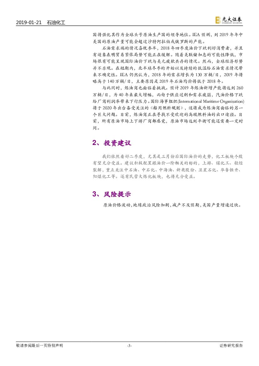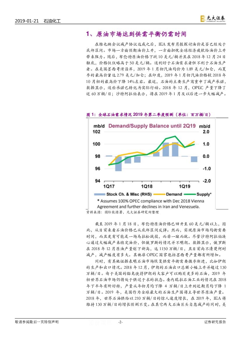 光大证券:IEA2019年1月月报点评:原油市场达到供需平衡仍需时间.pdf