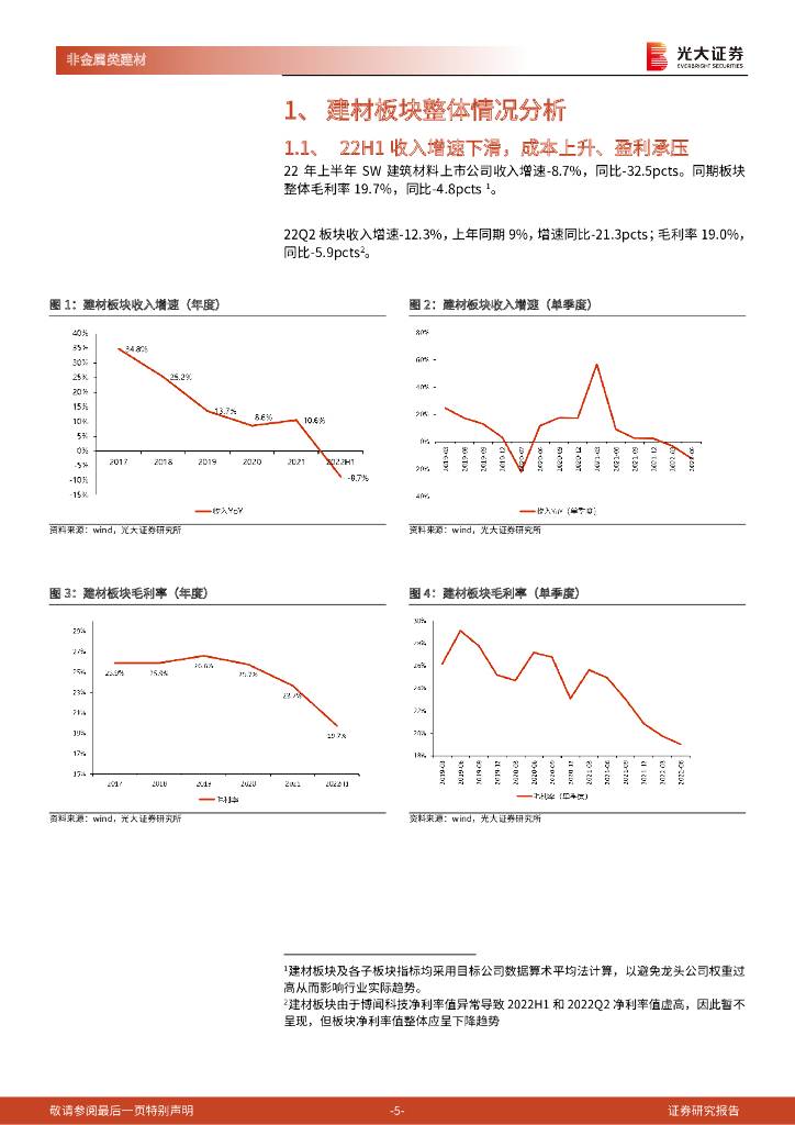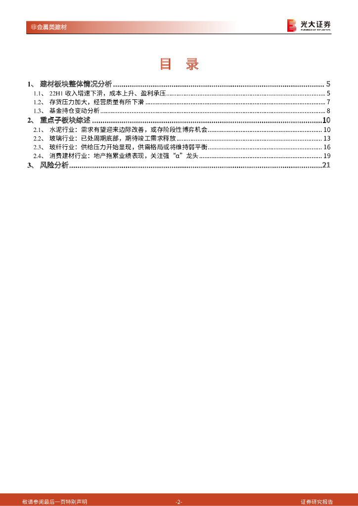 光大证券:非金属类建材行业2022年半年报总结:经营受制需求下滑及成本上涨,触底反弹或可期待.pdf