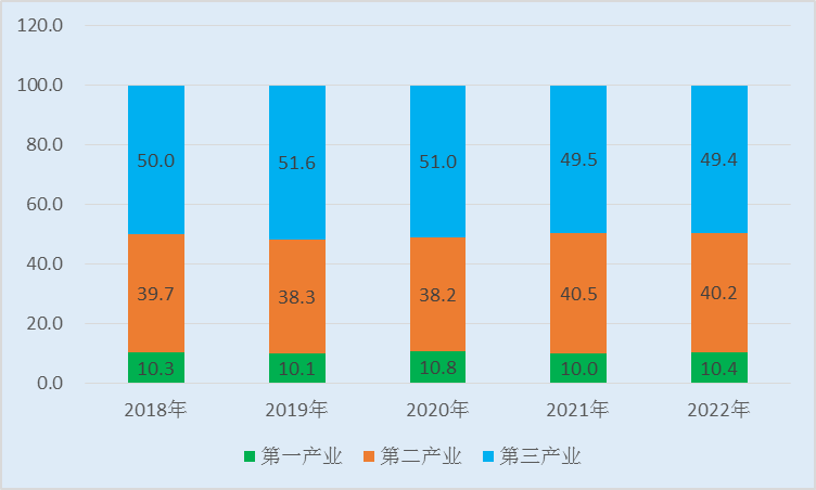 图2 2018-2022年三次产业增加值占全省生产总值比重(%)