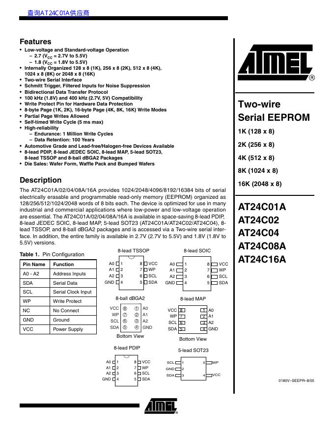 ATMEL AT24C01A/AT24C02/AT24C04/AT24C08A/AT24C16A 数据手册.pdf