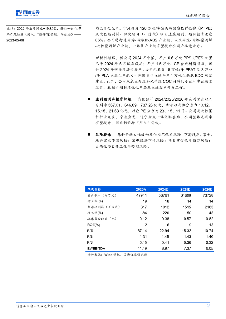 国海证券:金发科技(600143)-2024年三季报点评:Q3盈利同比改善,新材料项目投产在即.pdf