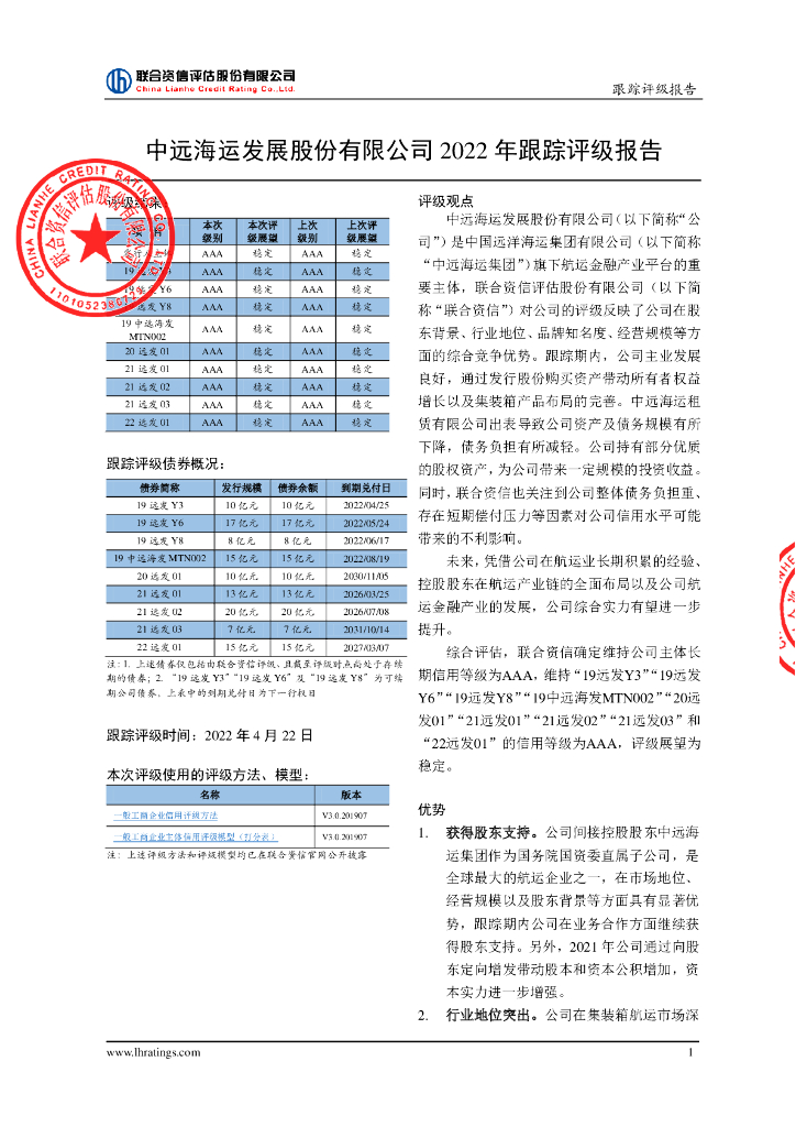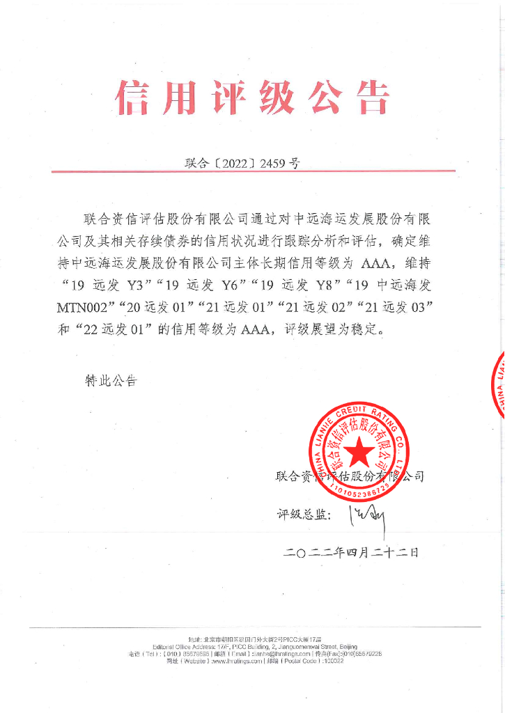 联合资信:中远海运发展股份有限公司2022年跟踪评级报告.pdf