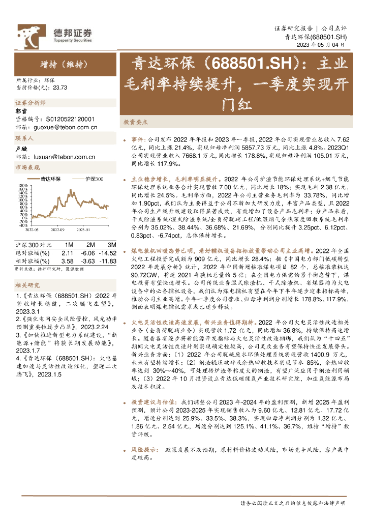 德邦证券:青达环保(688501)-主业毛利率持续提升,一季度实现开门红.pdf