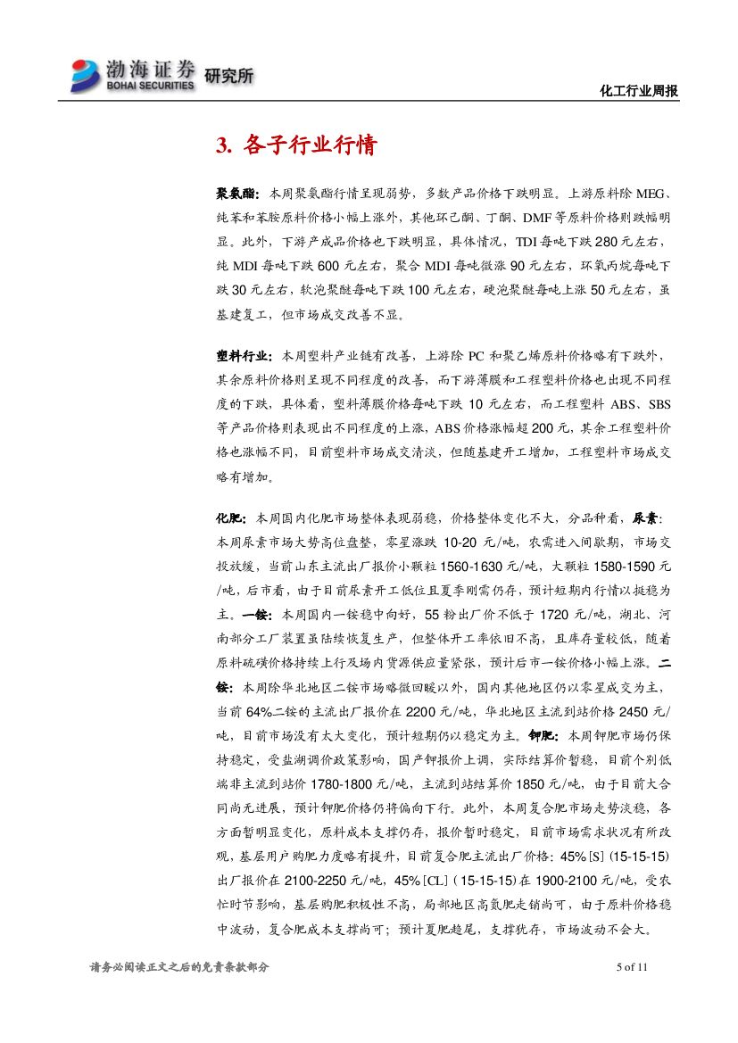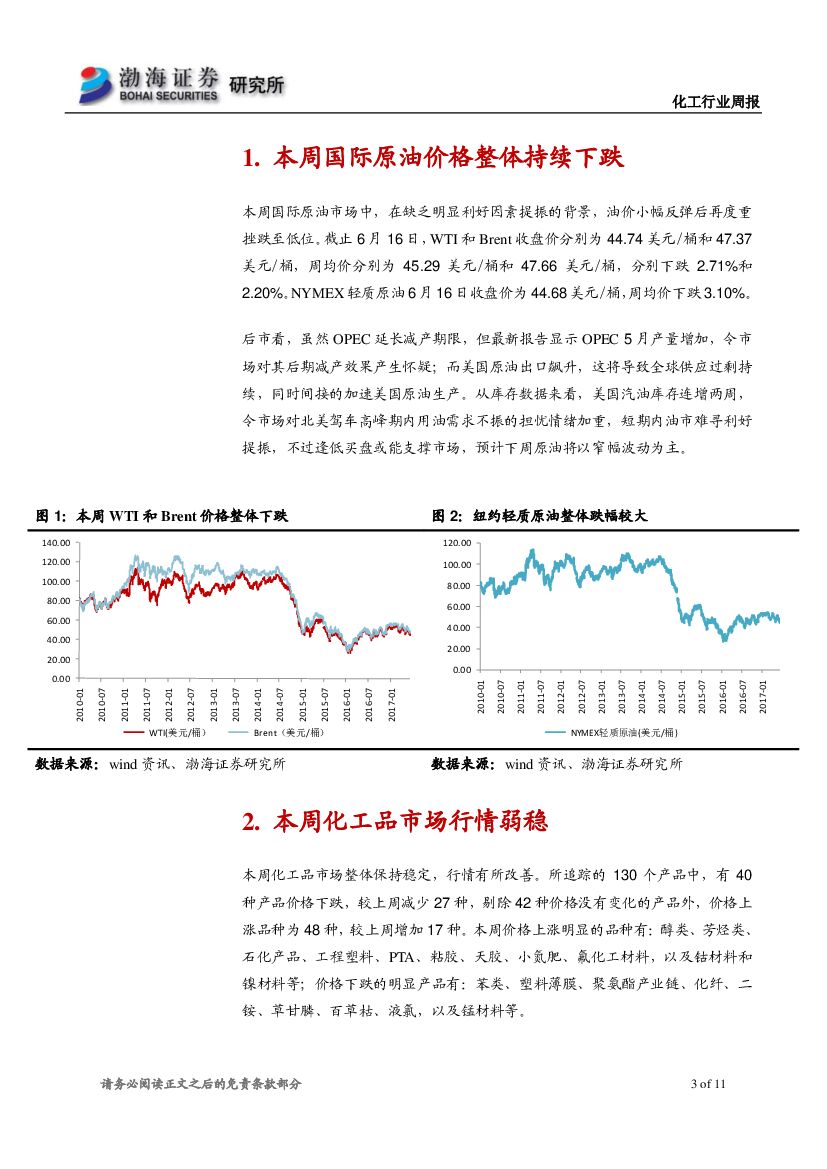 渤海证券:化工行业周报:本周原油价格整体继续下跌,化工品行情弱稳.pdf