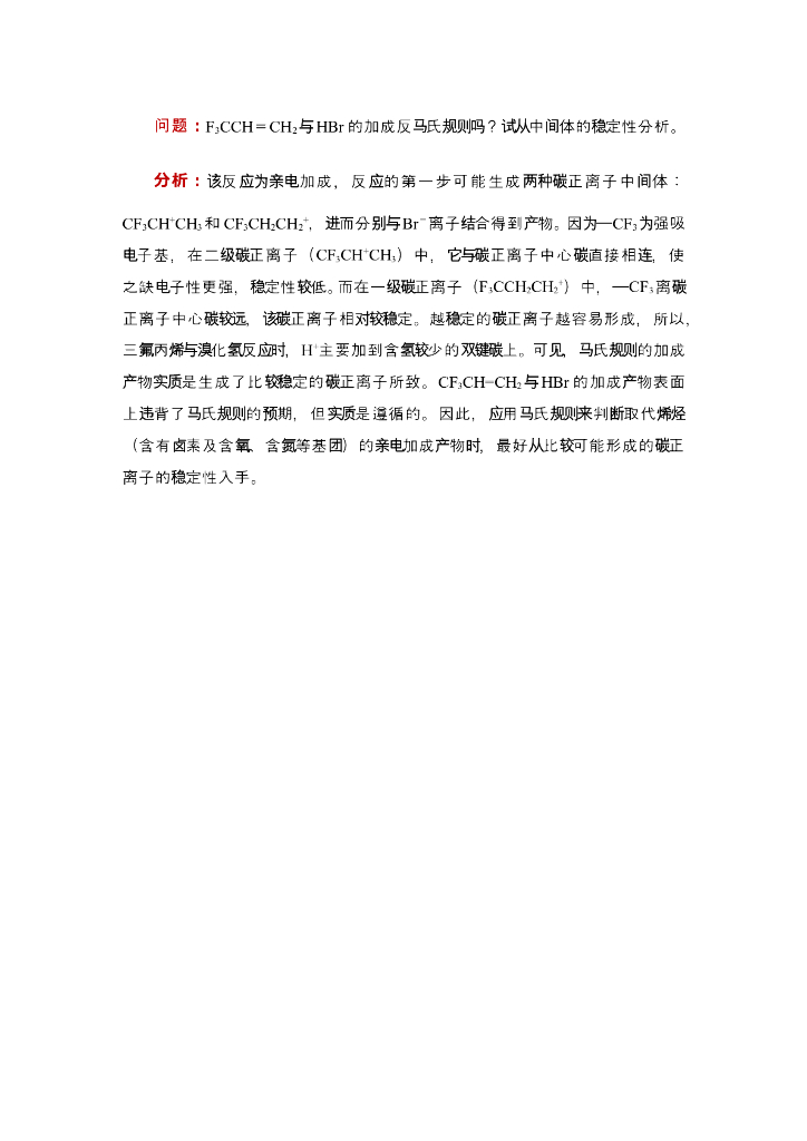 《有机化学》卤代反应各产物产率的计算;3,3,3-三氟丙烯与HBr的加成反马氏规则吗?.pdf
