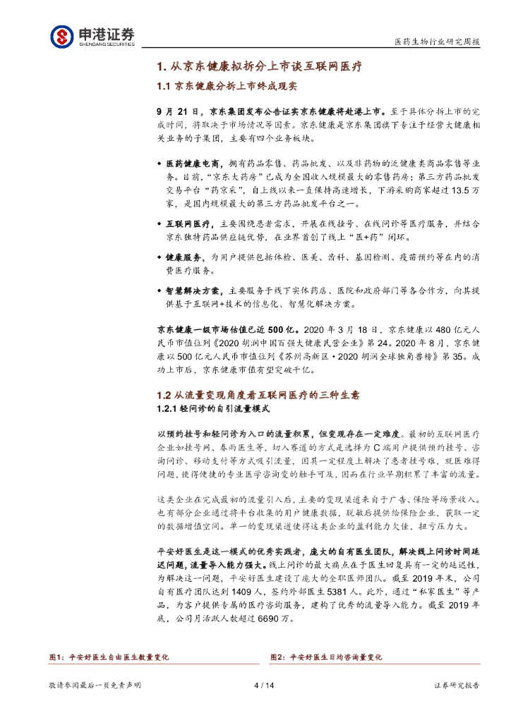 申港证券:医药生物行业研究周报:从京东健康拟拆分上市谈互联网医疗.pdf