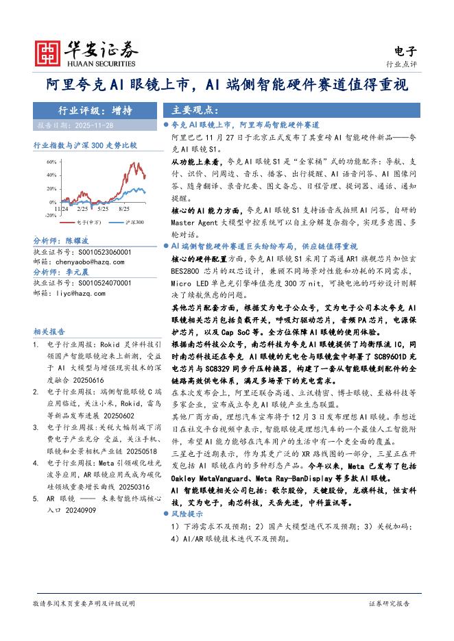 华安证券:电子:阿里夸克AI眼镜上市,AI端侧智能硬件赛道值得重视.pdf