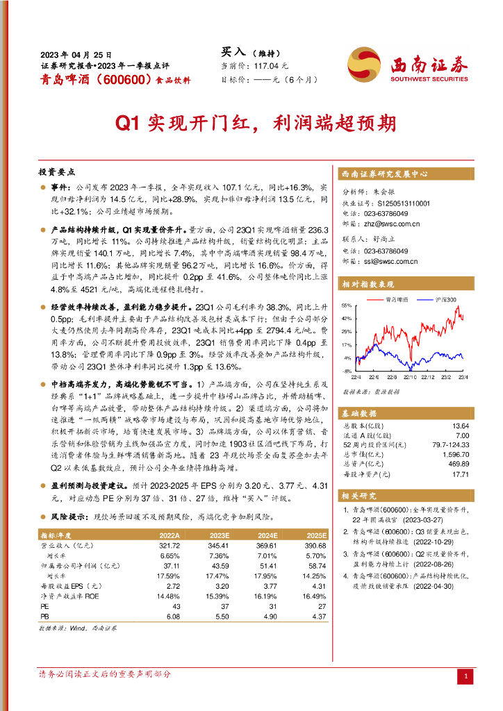 西南证券:青岛啤酒(600600)-Q1实现开门红,利润端超预期.pdf