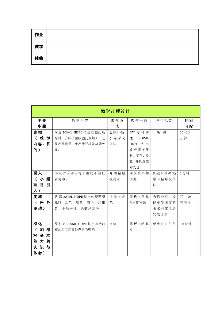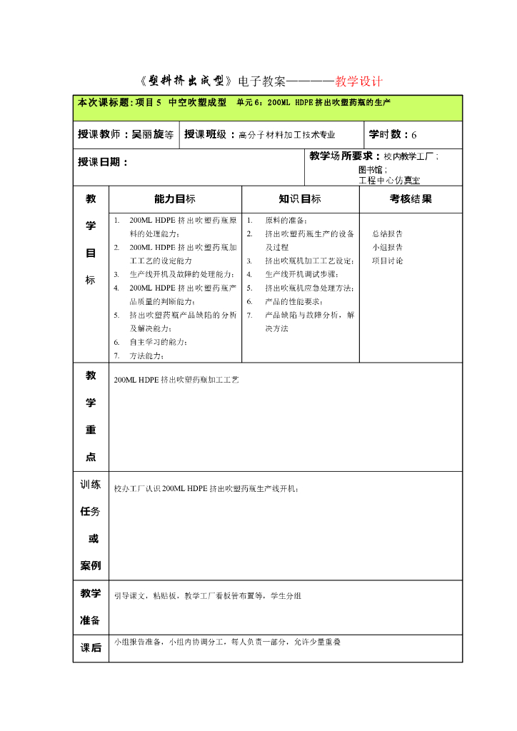 《塑料挤出成型》电子教案-单元6:200ML HDPE挤出吹塑药瓶的生产.pdf