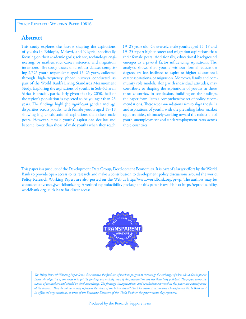 世界银行:永远不要太年轻而梦想远大:衡量新冠肺炎大流行时期的青年愿望(英文版).pdf