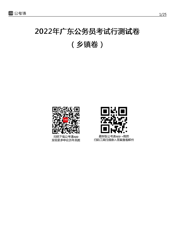 2022年广东公务员考试行测试题(乡镇).pdf