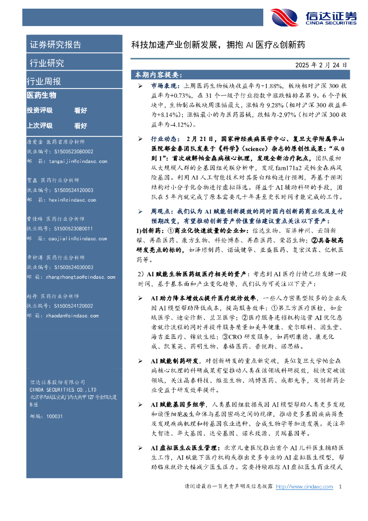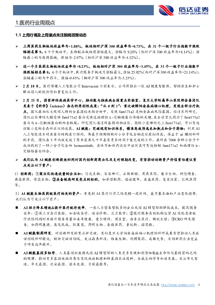 信达证券:医药生物行业周报:科技加速产业创新发展,拥抱AI医疗及创新药.pdf
