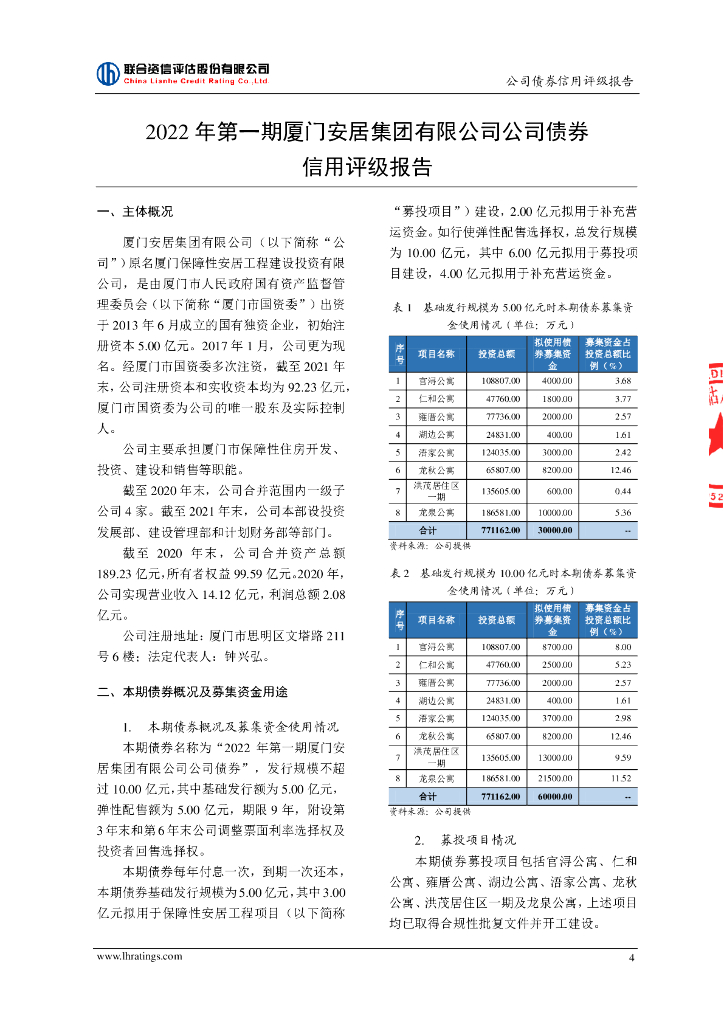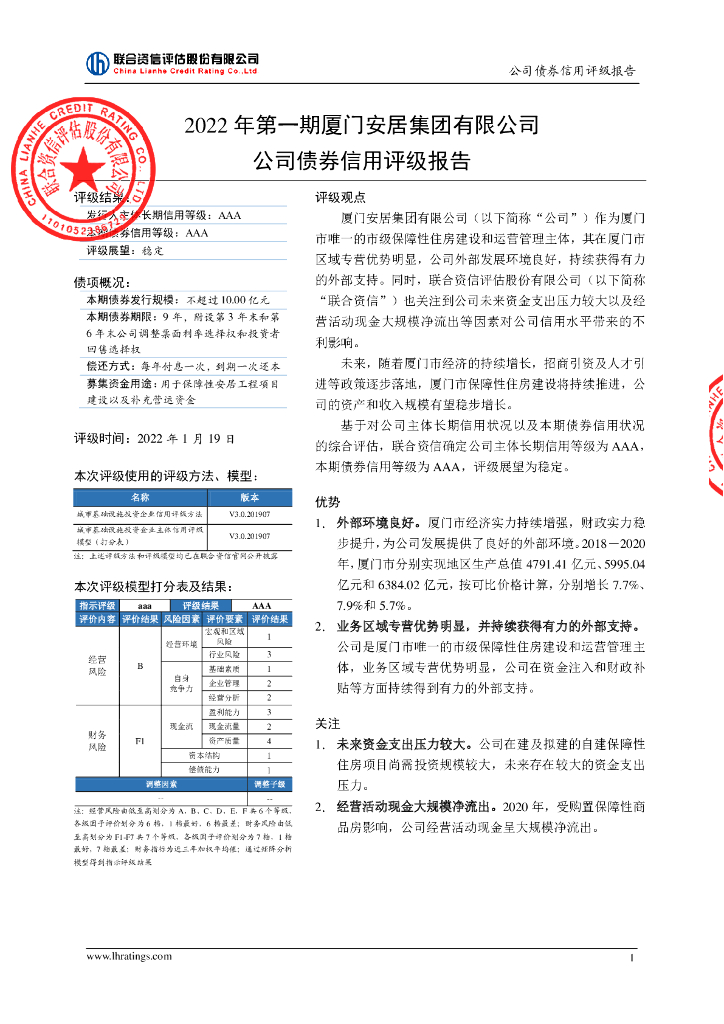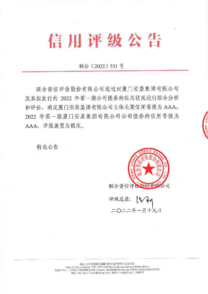 联合资信:2022年第一期厦门安居集团有限公司公司债券信用评级报告.pdf