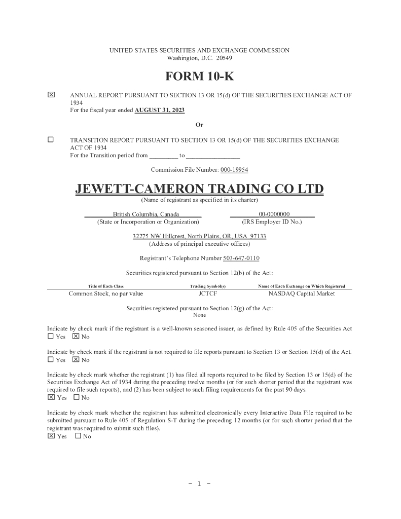 Jewett-Cameron Trading Company(JCTCF)2023财年年度报告(英文版).pdf