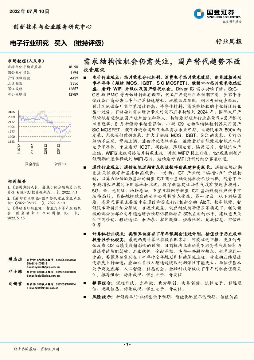 国金证券:电子行业周报:需求结构性机会仍需关注,国产替代趋势不改.pdf