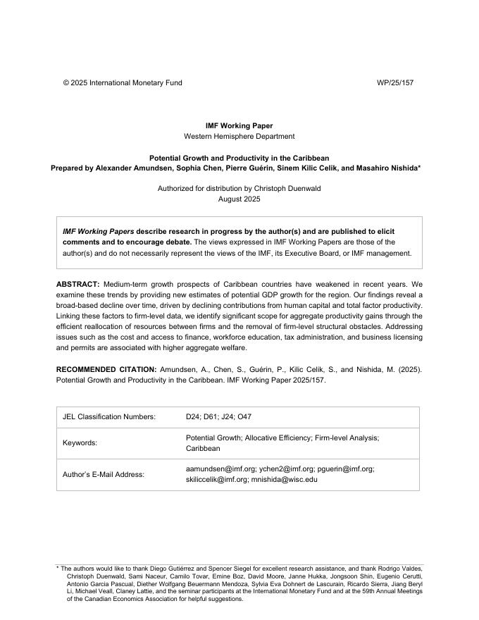 国际货币基金组织:加勒比地区的潜在增长和生产力(英文版).pdf