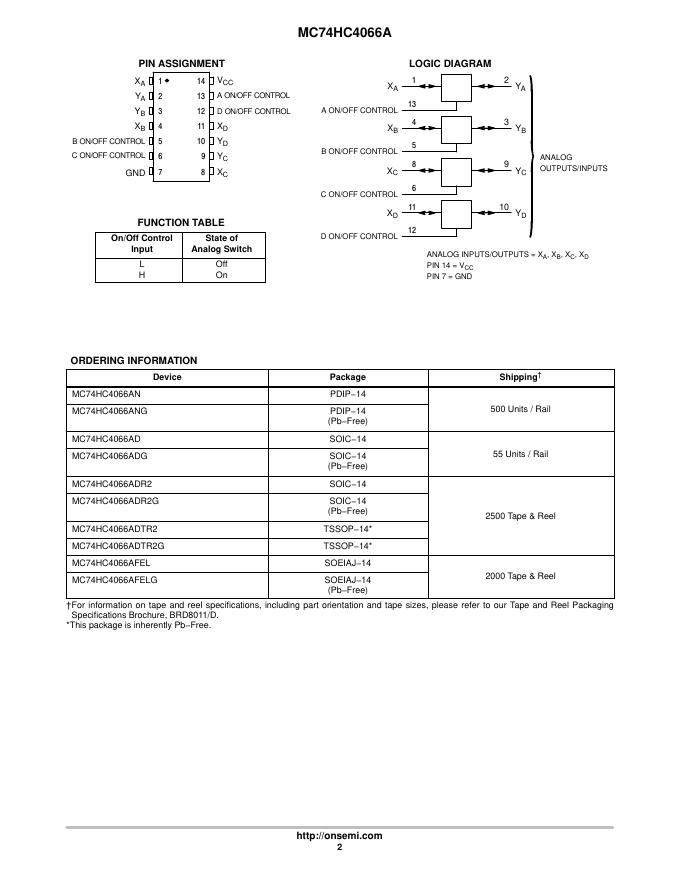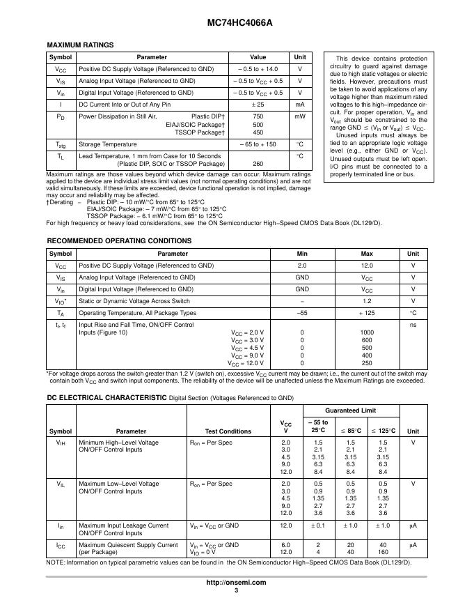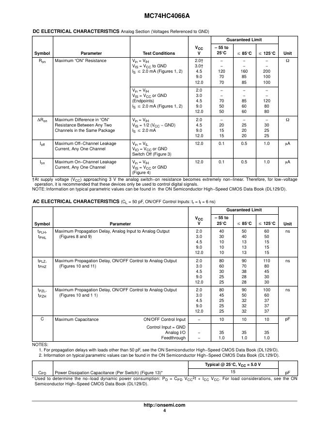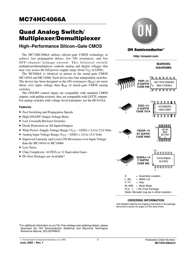ON SEMICONDUCTOR - MC74HC4066A 数据手册.pdf