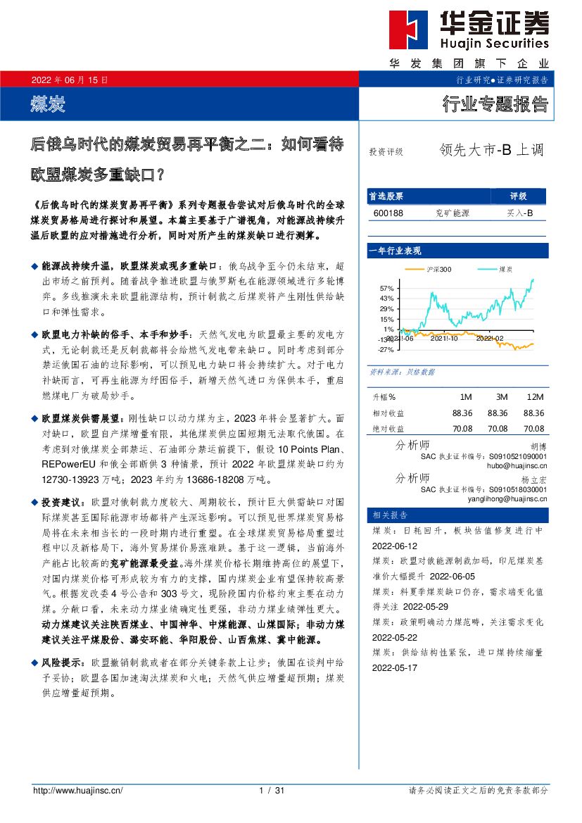 华金证券:煤炭行业专题报告:后俄乌时代的煤炭贸易再平衡之二:如何看待欧盟煤炭多重缺口?.pdf