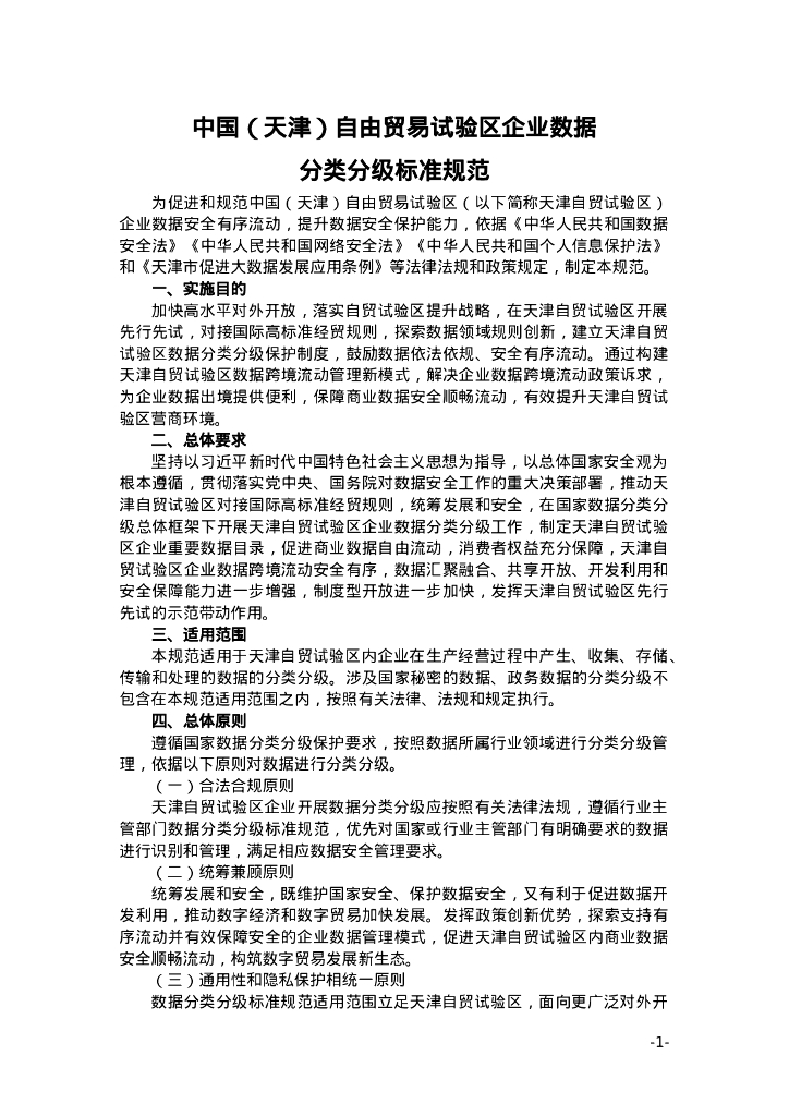 中国(天津)自由贸易试验区企业数据分类分级标准规范.doc