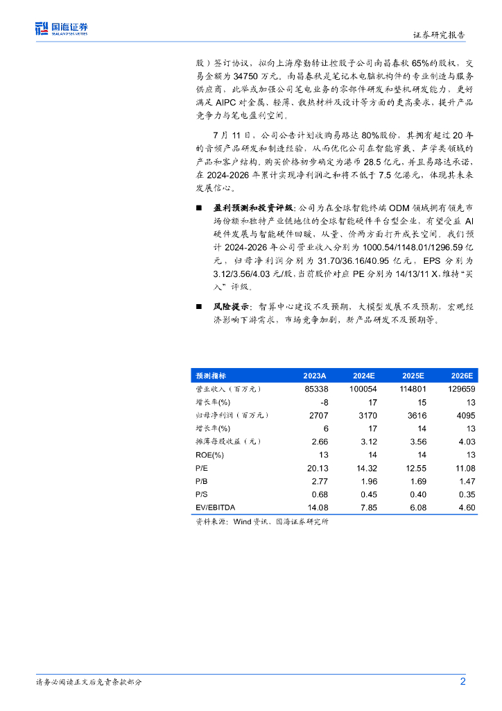 国海证券:华勤技术(603296)-2024年半年报点评:上半年业绩稳健增长,AI服务器新平台发货.pdf