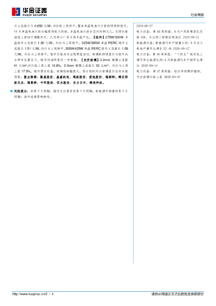 华金证券:电力设备第44周周报:第一届中国光伏产业高质量发展与技术标准论坛召开,钴价坚挺持续.pdf