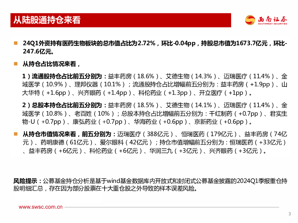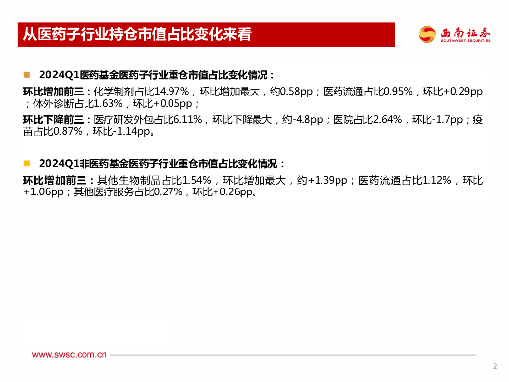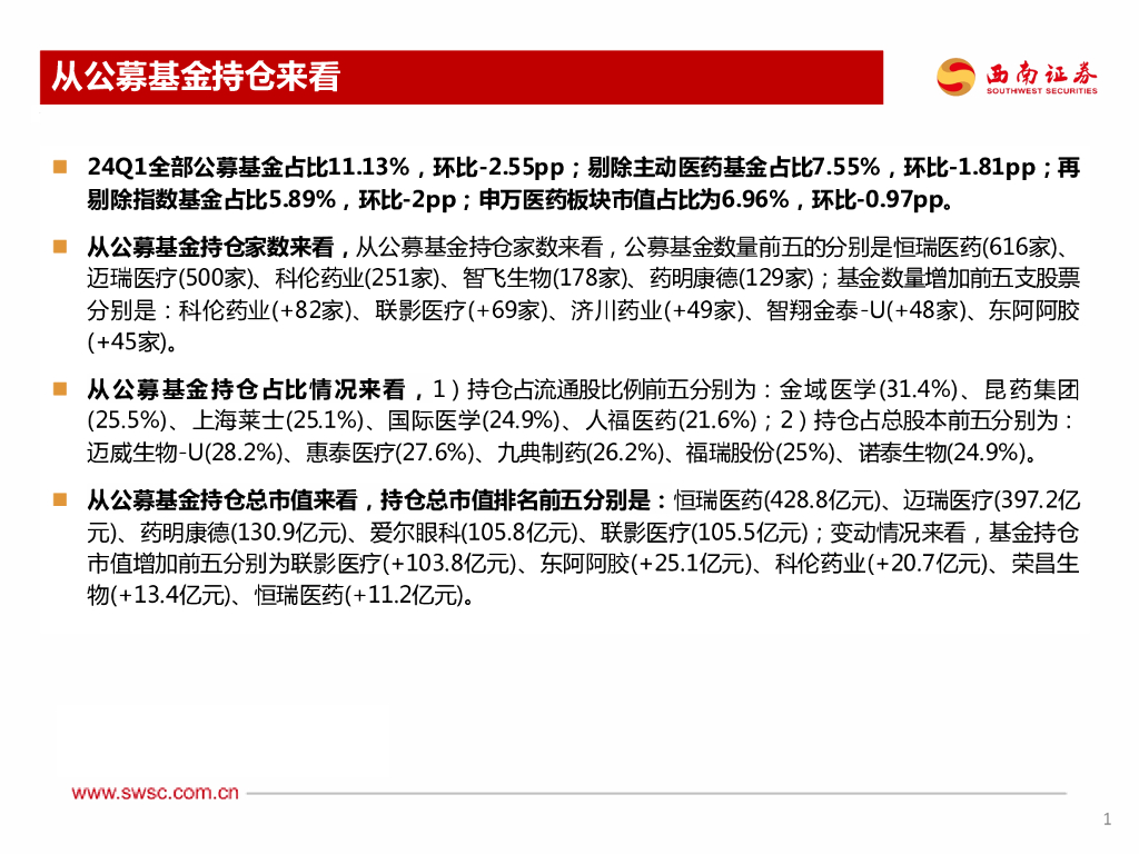 西南证券:2024Q1持仓分析:医药占比略有下降.pdf