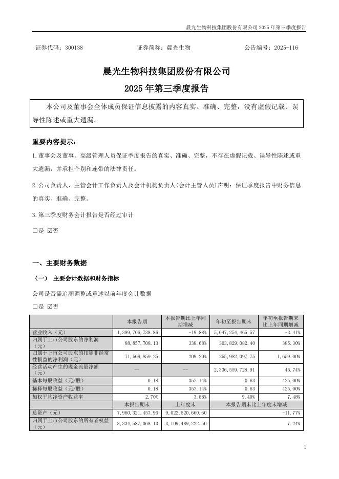 300138-晨光生物:2025年三季度报告.pdf