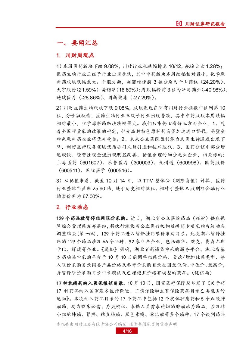川财证券:医药行业周报:三季报临近,关注业绩确定性机会.pdf