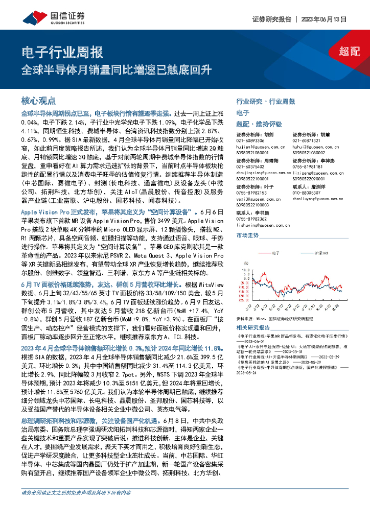 国信证券:电子行业周报:全球半导体月销量同比增速已触底回升.pdf