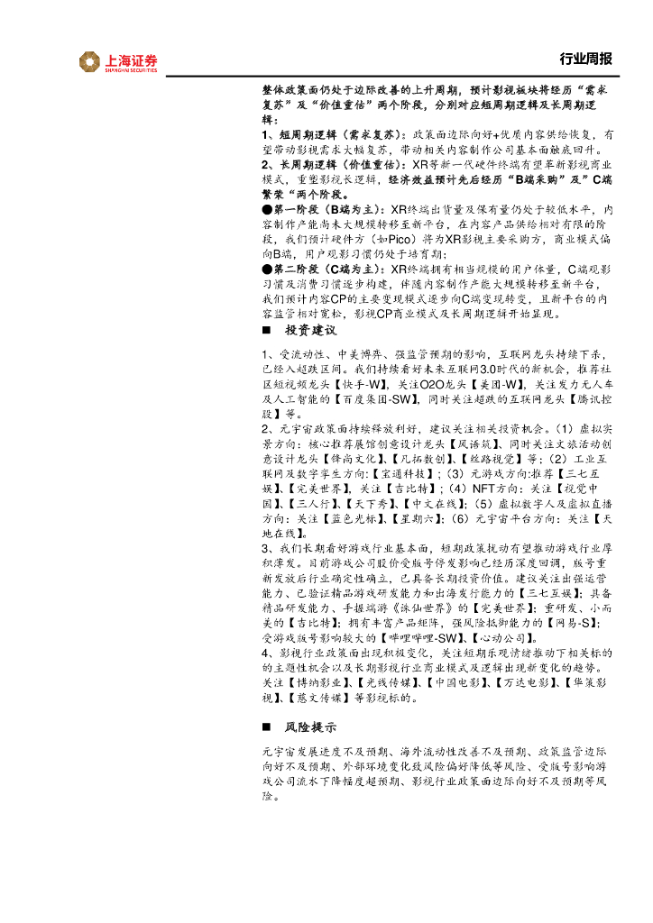 上海证券:互联网传媒行业周报:影视板块优质内容频出,预计将经历“需求复苏”及“价值重估”两个阶段.pdf