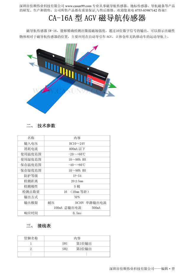 CA-16A 型 AGV 磁导航传感器 数据手册.pdf