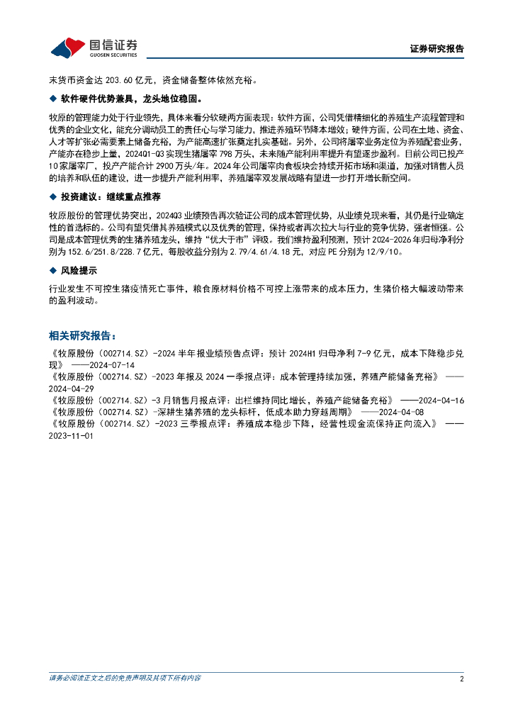 国信证券:牧原股份(002714)-2024三季报业绩预告点评:预计2024Q3归母净利90-100亿元,养殖成本稳步下降.pdf
