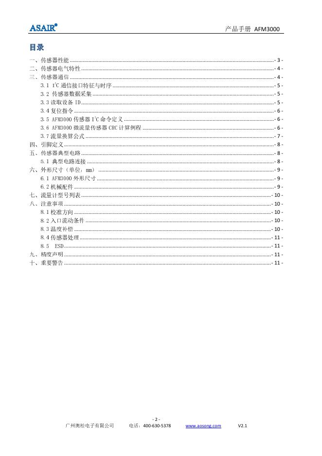 奥松电子 AFM3000 气体流量传感器产品手册.pdf