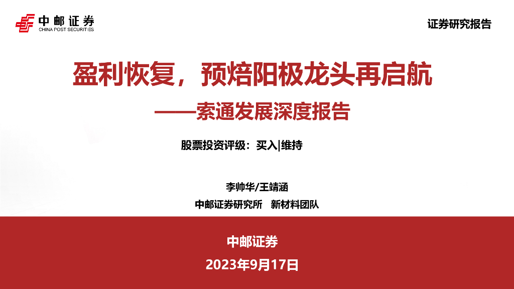 中邮证券:索通发展深度报告:盈利恢复,预焙阳极龙头再启航.pdf