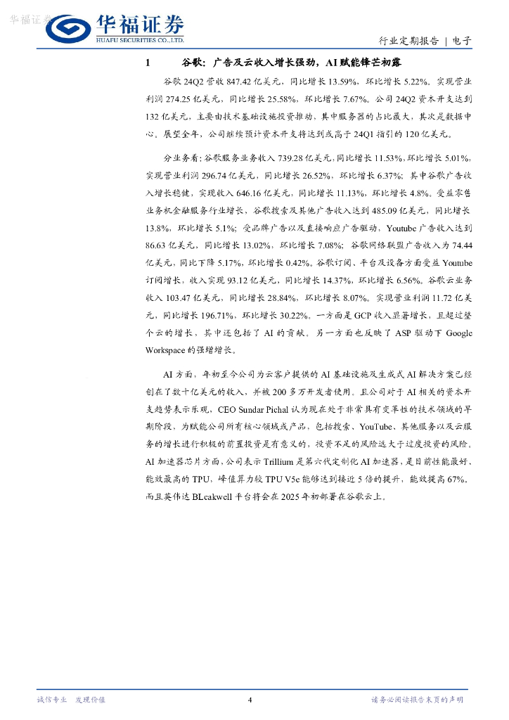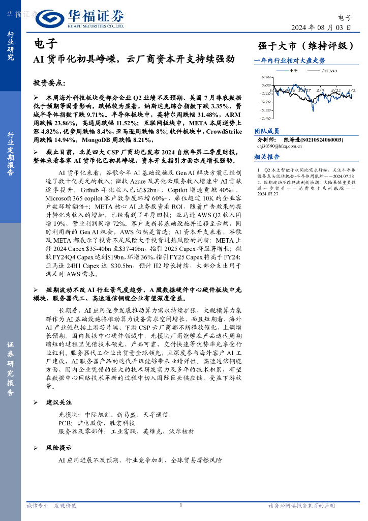 华福证券:电子行业定期报告:AI货币化初具峥嵘,云厂商资本开支持续强劲.pdf