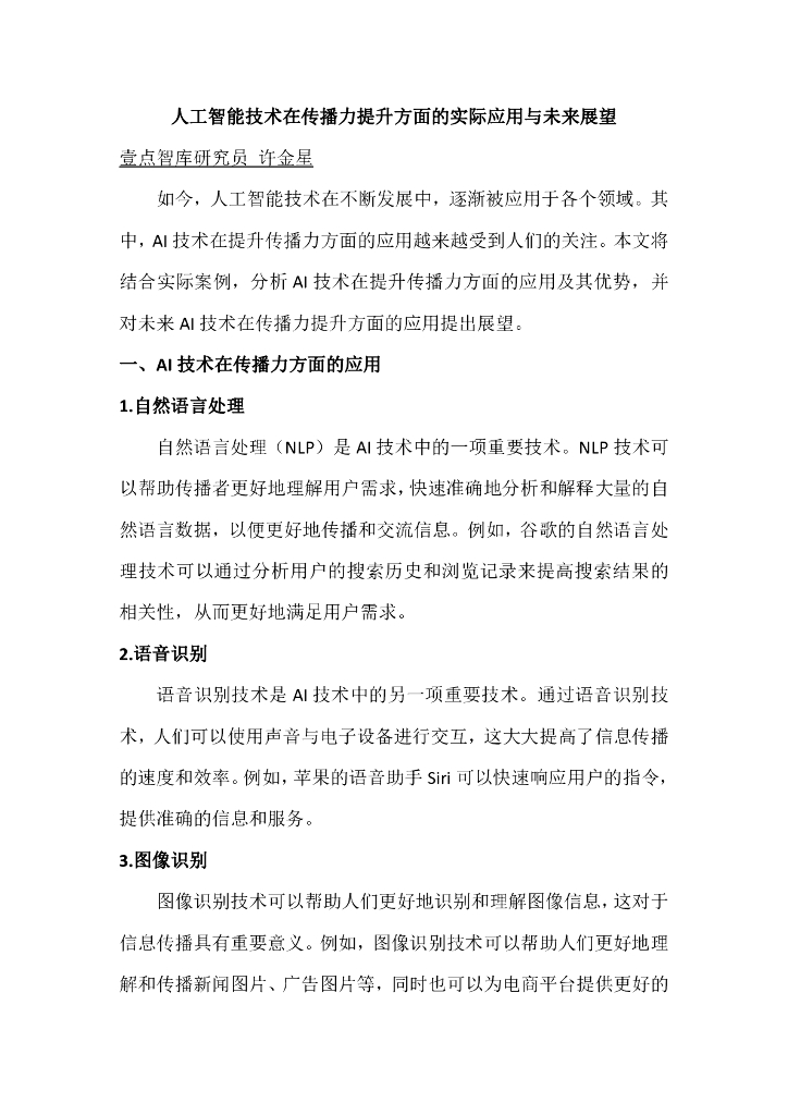 齐鲁晚报壹点智库:人工智能技术在传播力提升方面的实际应用与未来展望.pdf