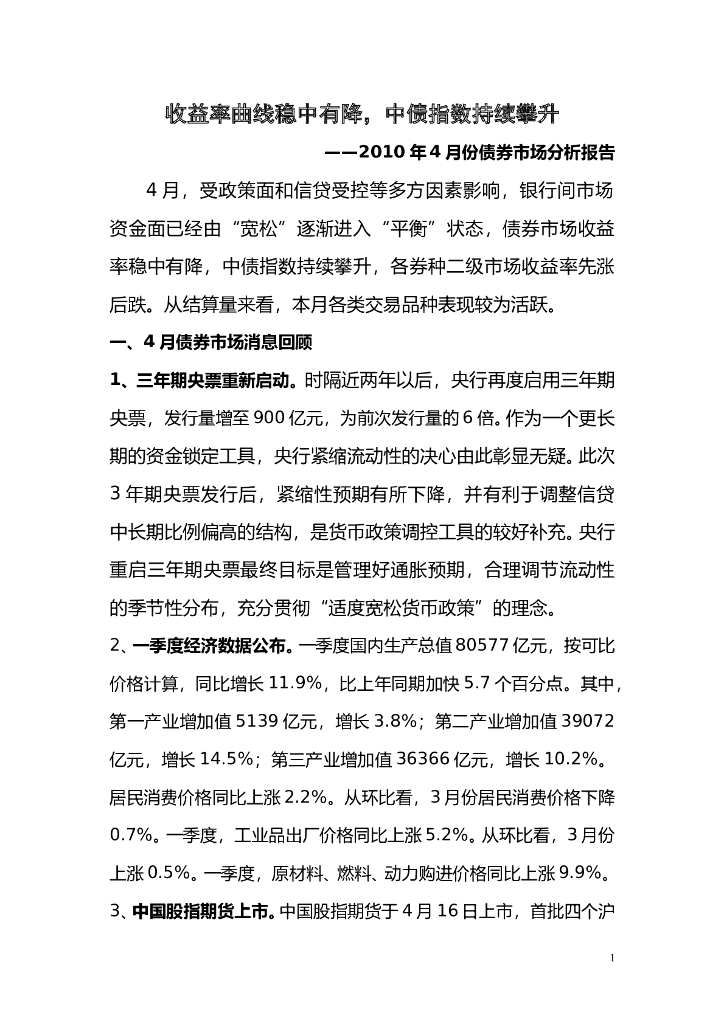 中债研发中心:2010年4月份债券市场分析报告.doc