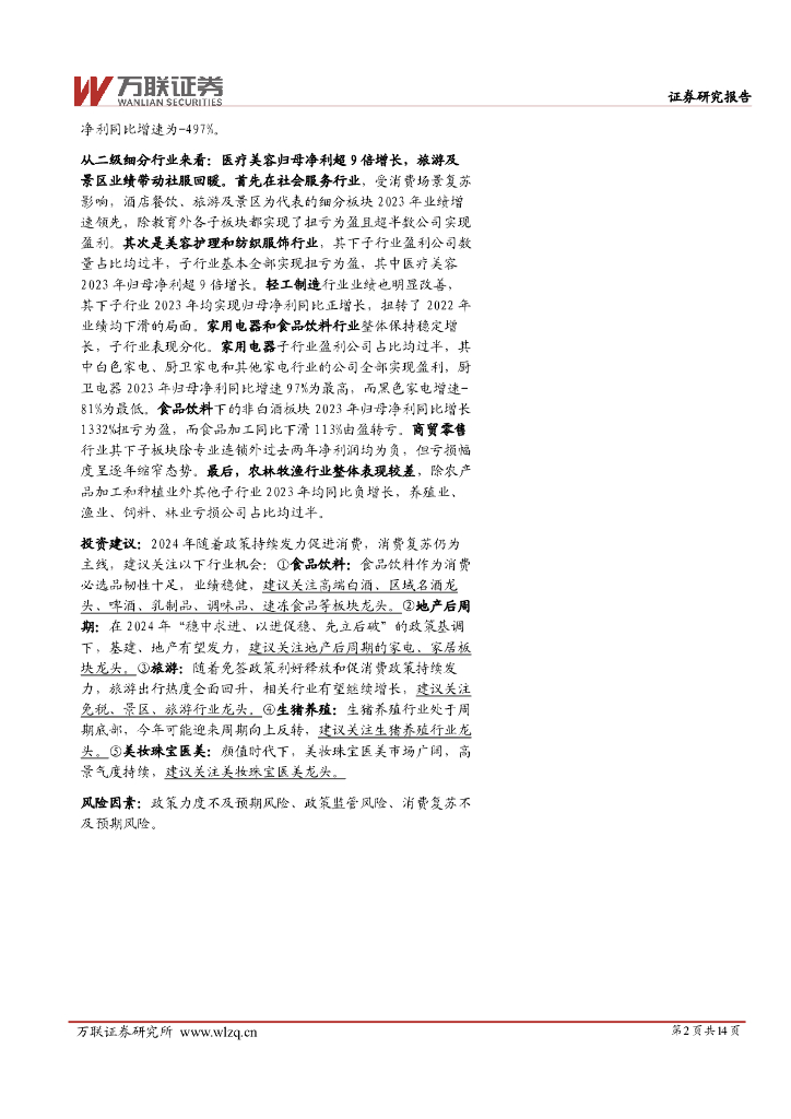 万联证券:大消费行业2023年业绩预告综述:家电、美护、食饮业绩表现最优,农牧盈利恶化.pdf
