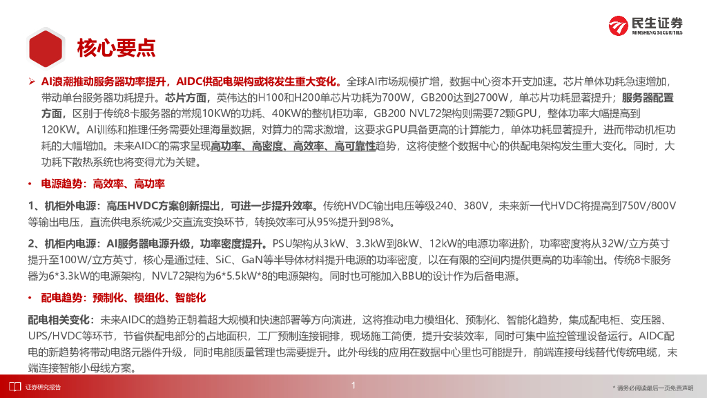 民生证券:AIDC系列(一):电源、配电、冷却的发展趋势.pdf