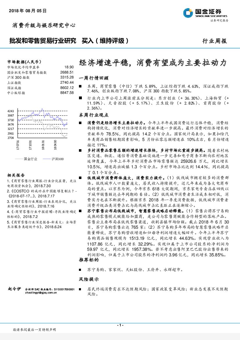 国金证券:批发和零售贸易行业研究周报:经济增速平稳,消费有望成为主要拉动力.pdf