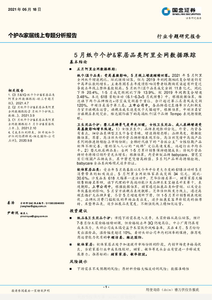 国金证券:个护&家居线上专题分析报告:5月纸巾个护&家居品类阿里全网数据跟踪.pdf