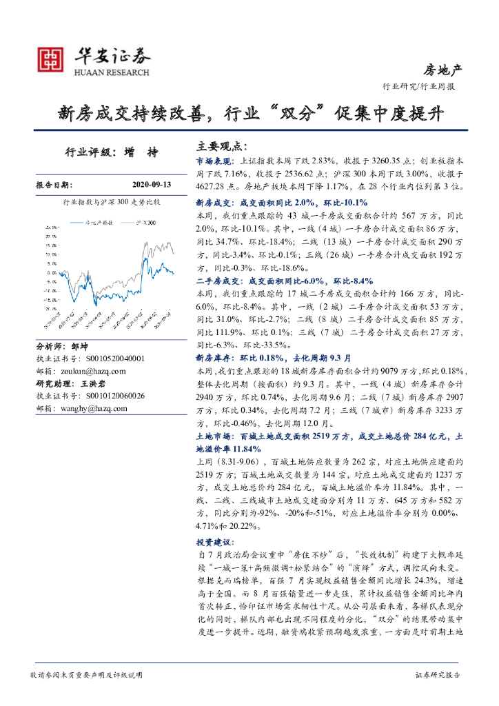 华安证券:房地产行业周报:新房成交持续改善,行业“双分”促集中度提升.pdf