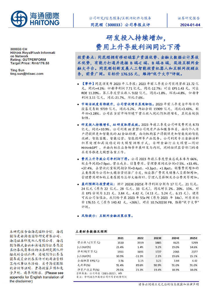 海通国际:同花顺(300033)-公司季报点评:研发投入持续增加,费用上升导致利润同比下滑.pdf