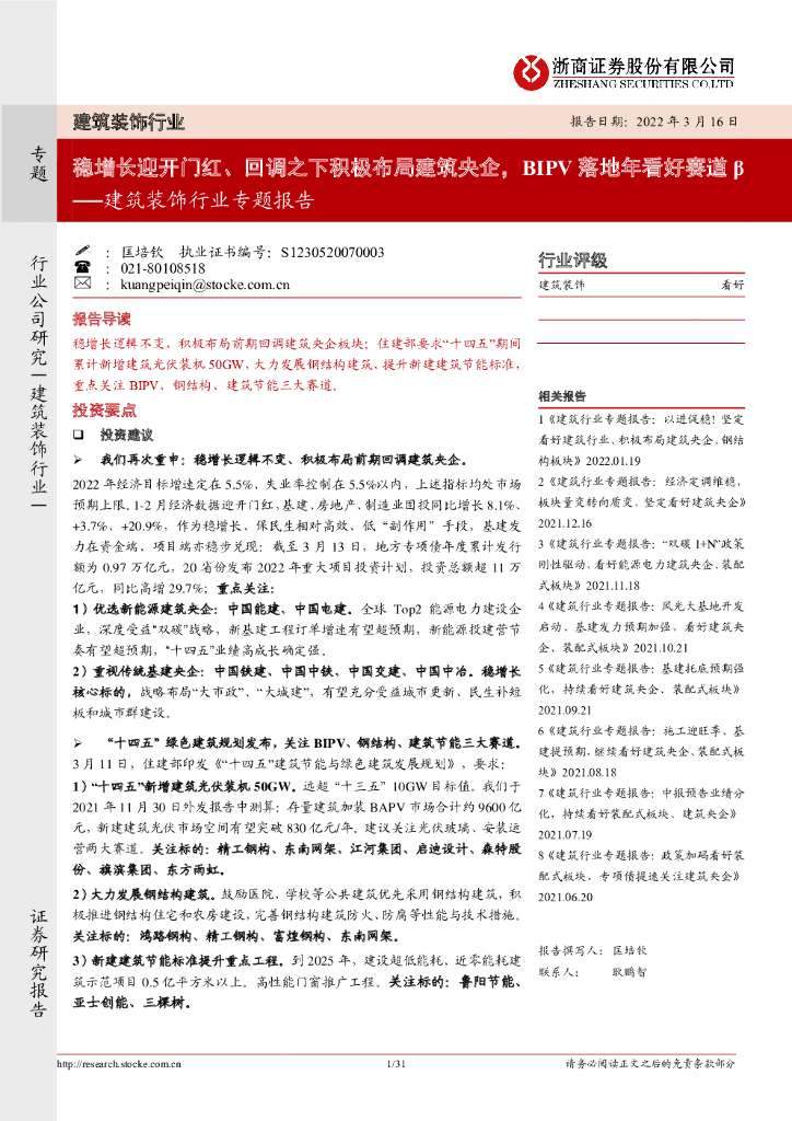 浙商证券:建筑装饰行业专题报:稳增长迎开门红、回调之下积极布局建筑央企,BIPV落地年看好赛道β.pdf