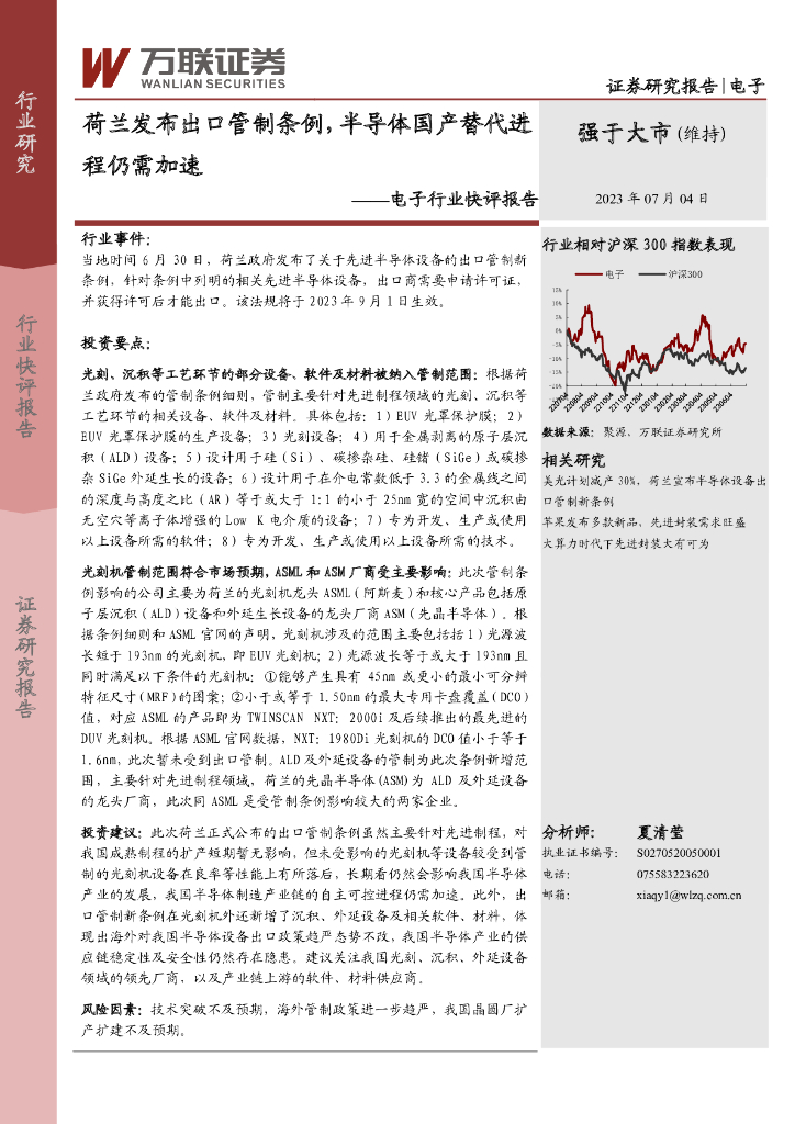 万联证券:电子行业快评报告:荷兰发布出口管制条例,半导体国产替代进程仍需加速.pdf