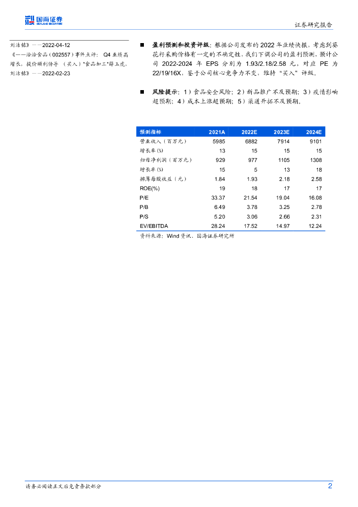 国海证券:洽洽食品(002557)-2022年业绩快报点评:收入端符合预期,成本端仍需观察.pdf