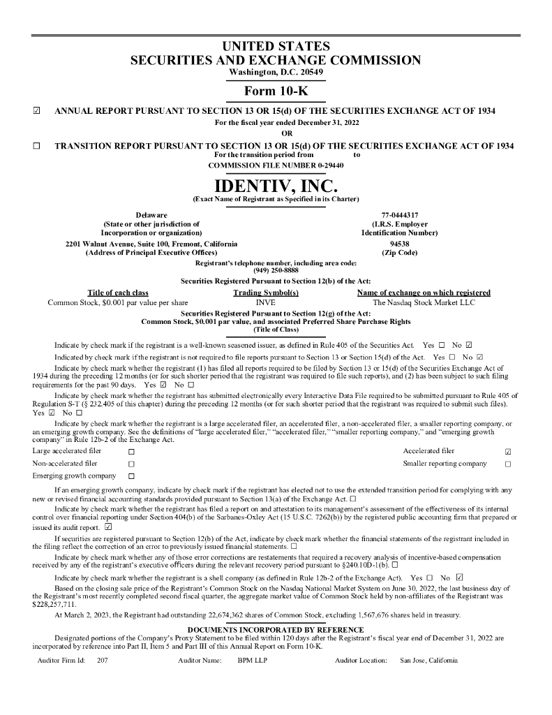 Identiv(INVE)2022财年年度报告(英文版).pdf