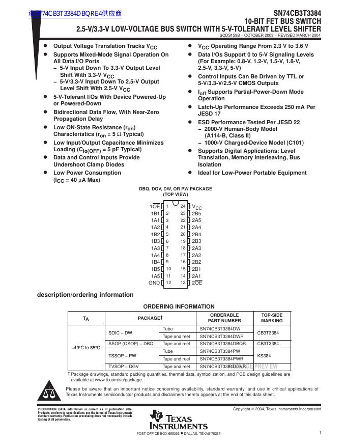 TEXAS INSTRUMENTS SN74CBT3384 数据手册.pdf