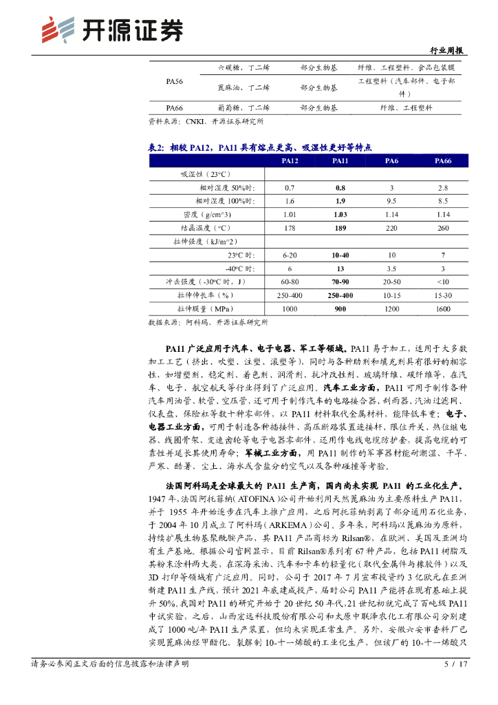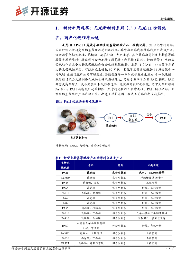开源证券:新材料行业周报:尼龙新材料系列三:尼龙11性能优异,国产化进程待加速.pdf