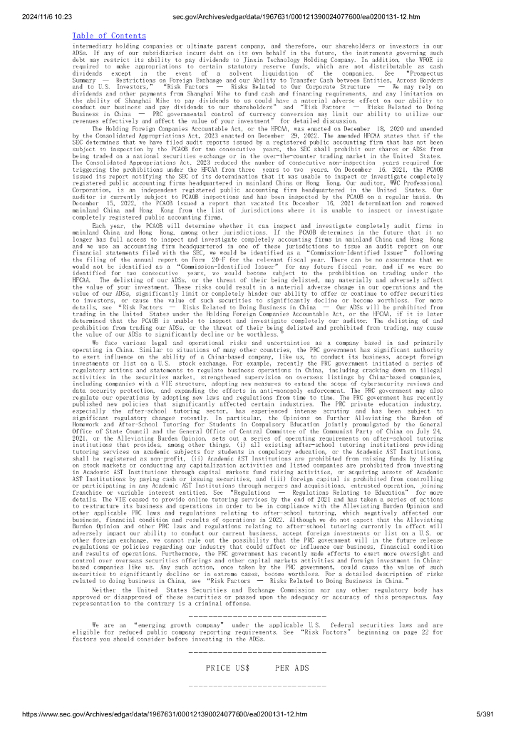 Jinxin Technology Holding Company美股纳斯达克IPO上市招股说明书.pdf